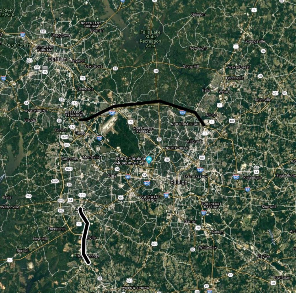 The first line stretches from RTP to Triangle Town Center along I-540 which was one of the most congested corridors pre-COVID. The second extends the Durham-Apex line through Holly Springs, which is a rapidly growing suburb with a lack of highway access.