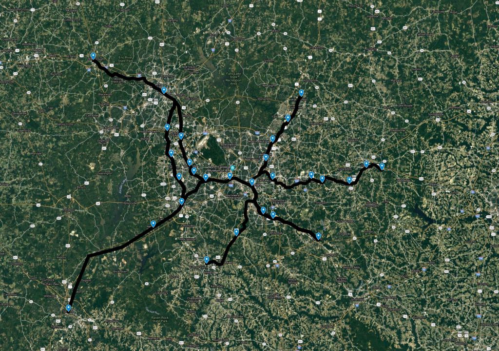 My first post explores a world where the Raleigh-Durham area has a comprehensive Transit system. I didn’t include the planned BRT lines since it looks like that is finally getting off the ground. There are also preliminary plans for a Commuter Rail line stretching from Garner to Durham but that is in the early stages. The CAMPO 2045 (https://www.campo-nc.us/transportation-plan/2045-metropolitan-transportation-plan) plan also calls for a few other lines but they are very far off.