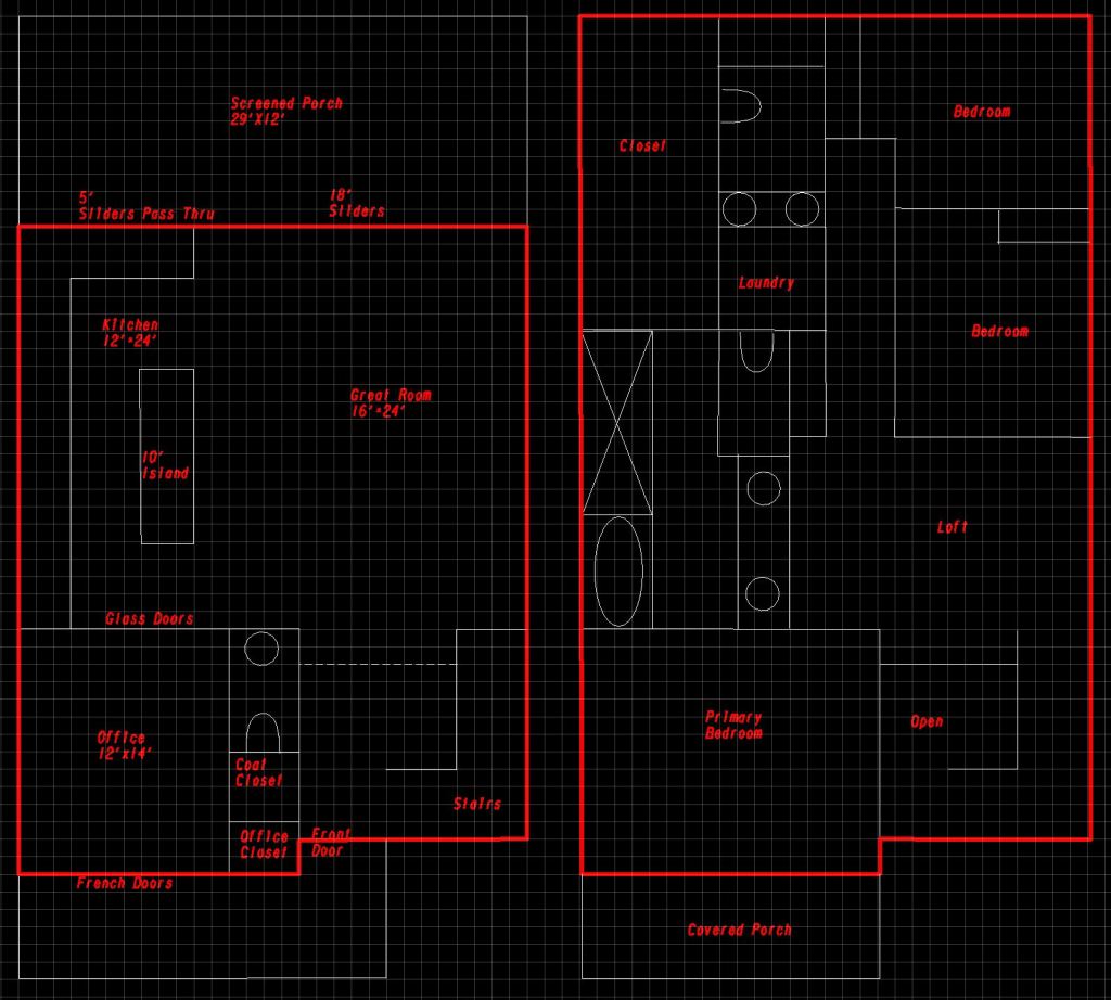 The main living area sprawls with a giant kitchen featuring a 10 foot island and a bar with pass-through leading to the massive 29′ x 12′ screened porch. Opposite sits a great room with 18′ accordion sliding doors out to the porch.