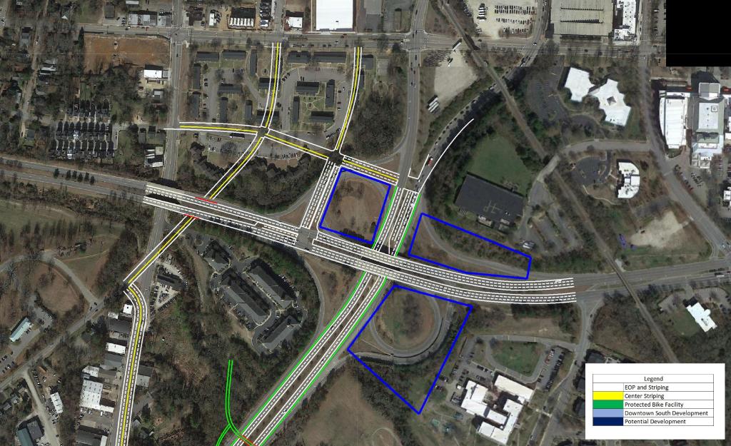 There are currently plans for a large development straddling I-40 and S. Saunders street titled appropriately, Downtown South. There are hopes that this will spur other development in this section of the city.