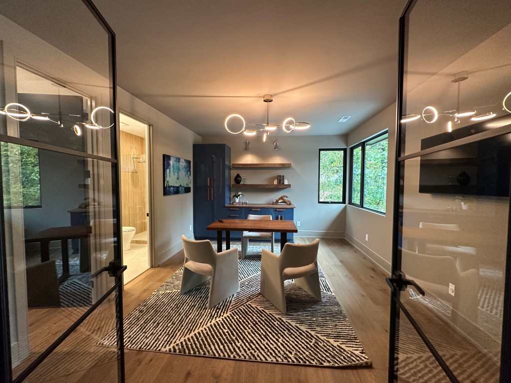 Modern industrial doors for the office were about all I could focus on! But that was countered with the lack of sliders off the living room to the outdoor area.