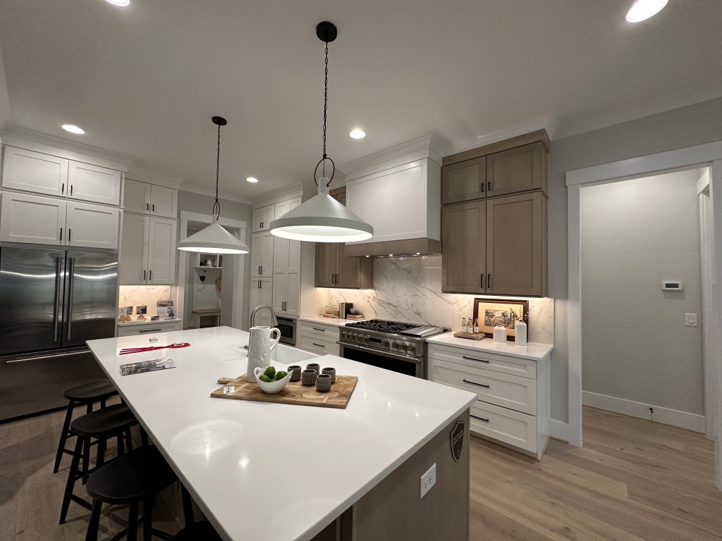 Homes by Dickerson latest addition to Wendell Falls is a beauty! Amazing job on the exterior of this. My big nitpick is the cabinets though. Other big plusses are the front and back porches and black finishes. Add in the surprising level of walkability that Wendell Falls offers, it’s enough to draw many out of the city.