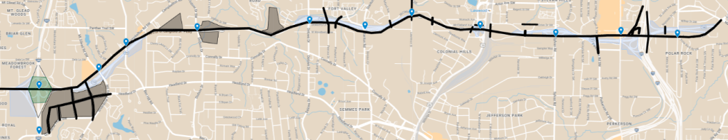 MARTA recently published plans to revitalize the Campbellton Road corridor in Southwest Atlanta. While plans initially called for Light Rail / Streetcar, BRT (Bus Rapid Transit) is now the preferred alternative. MARTA and the City of Atlanta should shift focus from just Campbellton Road to Langford Pkwy. Langford Pkwy is a six mile stretch of highway that was meant to be part of I-420 in the 1960s. The original alignment was proposed to stretch from Douglasville to East Atlanta.