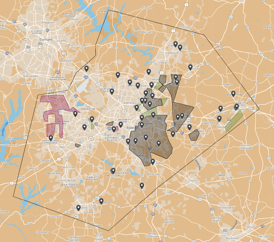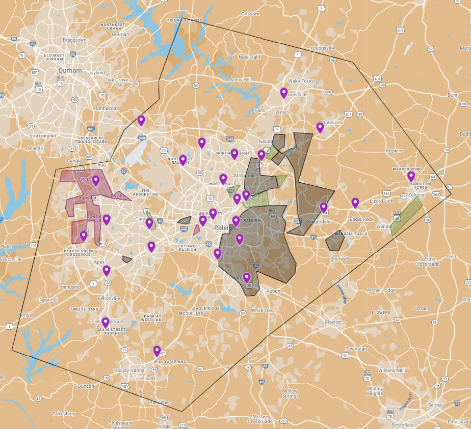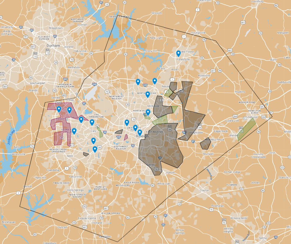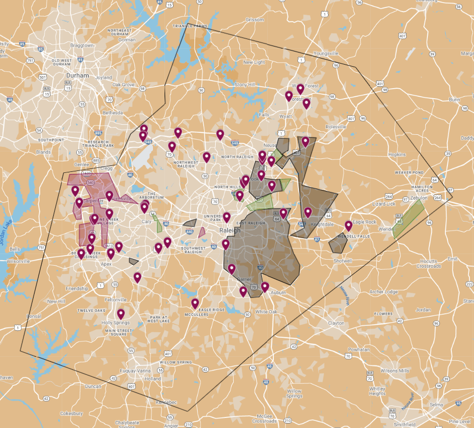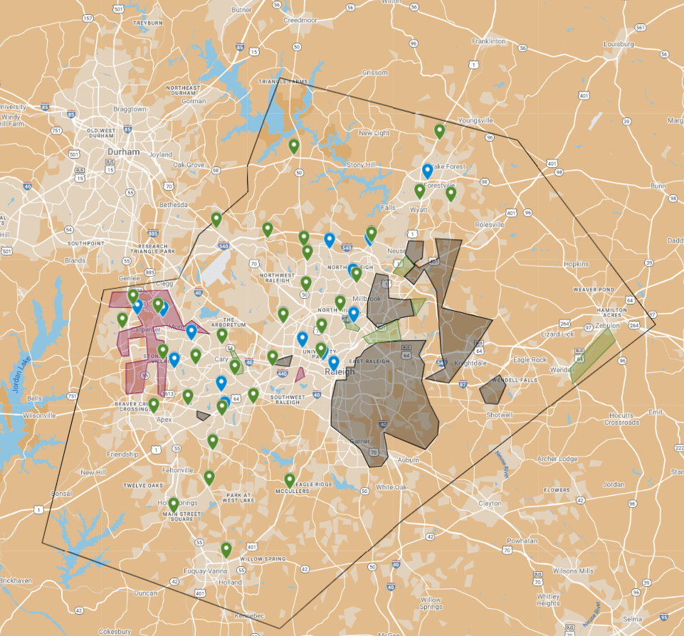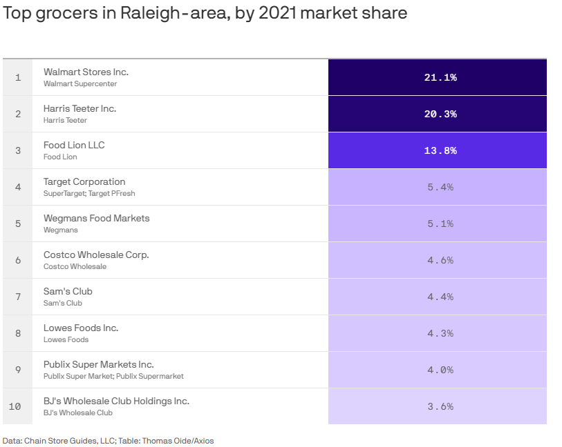 Raleigh’s grocery scene is a competitive one that is dominated by Harris Teeter, Food Lion and Walmart. But the distribution of certain stores leaves a lot to be desired.