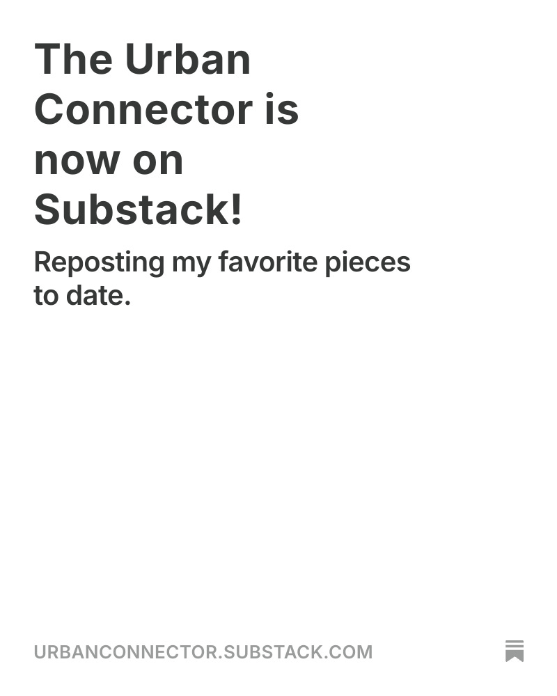 Making the jump to Substack to supplement my main site. Subscribe to my YouTube Channel Subscribe to receive email notifications for new articles. ✓ Subscribed I’ll be reposting my favorite ideas to date plus all new content over on Substack! As always, everything will remain free so hop on over and subscribe! Phil Veasley, PE, CNU-A,Continue reading “The Urban Connector is now on Substack!”