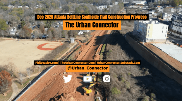 The Southside Trail marches on! Officials maintain that it will be open in time for the World Cup. Head to YouTube to watch! Subscribe to my YouTube Channel Subscribe to receive email notifications for new articles. ✓ Subscribed Phil Veasley, PE, CNU-A, The Urban Connector, is a Professional Engineer with Nelson\Nygaard Consulting Associates focused on creating safer,Continue reading “YouTube – December 2025 Atlanta BeltLine Southside Trail Construction Progress”