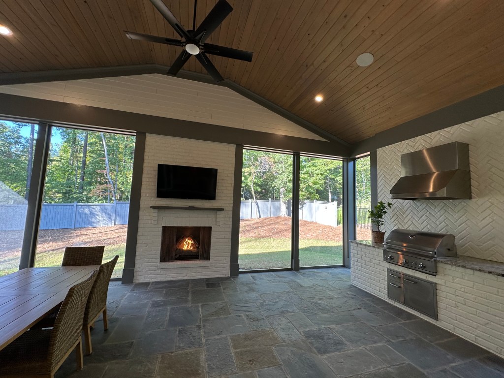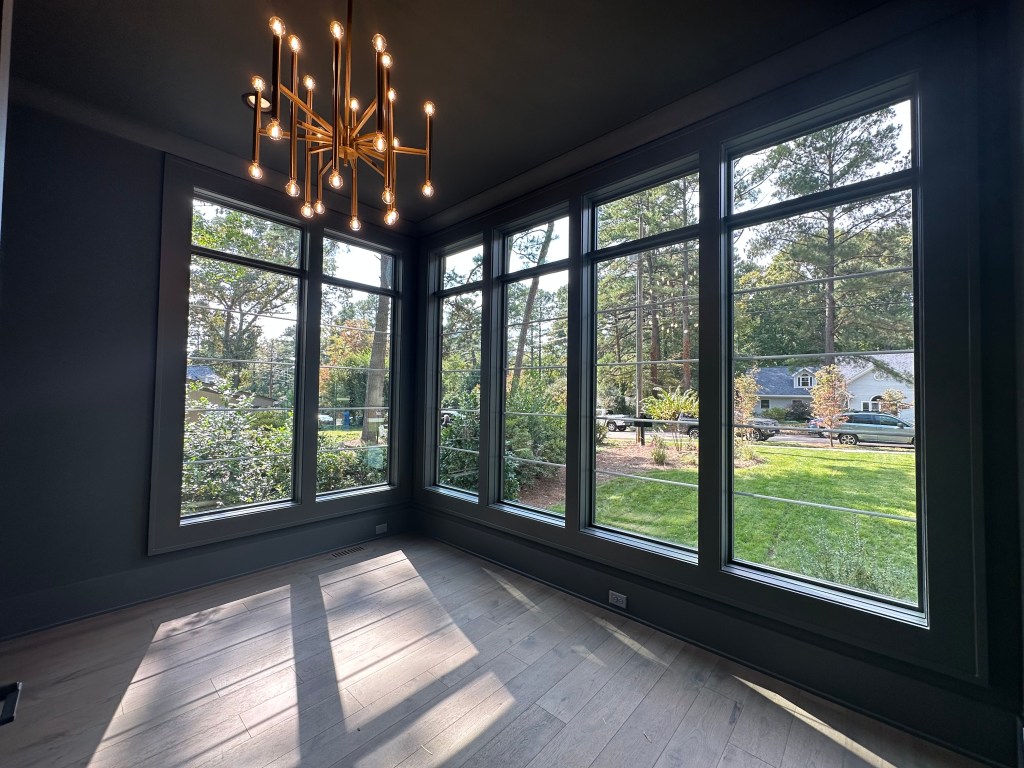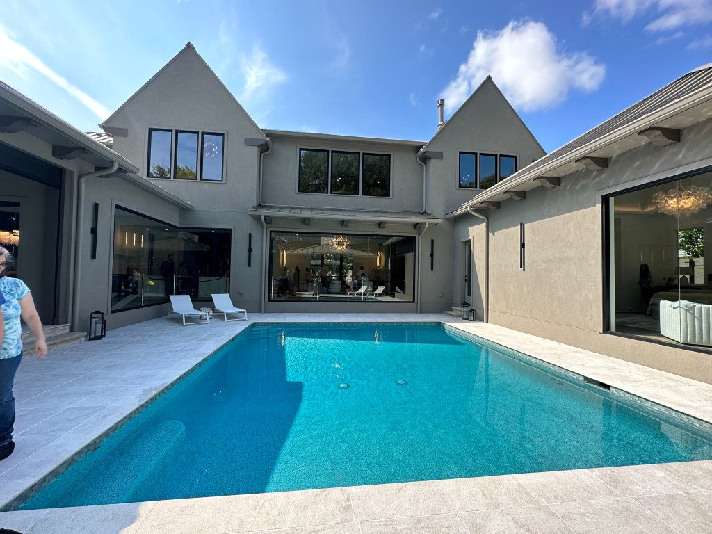 Located in West Raleigh’s wooded mansion areas this home features incredible finishes and a wonderful pool but the exterior and finishes weren’t my style. Other missed opportunities for me are lack of upper porch with the flat roofs and location. Despite being “in town” there are no sidewalks or things to walk to.